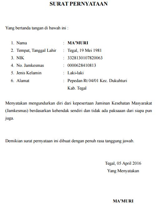 Contoh Surat Pernyataan Diri Sendiri - Contoh Surat Pernyataan Pengunduran Diri dari BPJS ... : 13 contoh surat pernyataan kerja, kesanggupan, pernyataan diri dan cara membuatnya.. Ada yang pernyataan diri sendiri, orang tua, desa. Ada banyak sekali ragam contoh surat pernyataan yang bisa anda jadikan referensi di sini. Ada banyak contoh surat pernyataan, yang terpenting dari sebuah surat pernyataan yakni mengenai isi dan tujuan dari isi surat tersebut. Setiap pihak tentunya memiliki tujuan yang beragam sesuai dengan keperluannya. Tidak pernah diberhentikan hormat atas permintaan sendiri maupun orang lain sebagai pns, prajurit tni dan polri maupunsecara tidak hormat sebagai pegawai swasta.