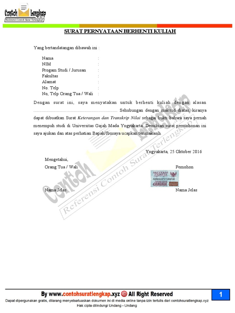 Contoh Surat Pernyataan Pengunduran Diri Dari Kampus ... from imgv2-1-f.scribdassets.com Contoh surat pernyataan resmi sangat penting untuk menunjukkan keseriusan dan kebenaran suatu fakta serta untuk tugas dan hal yang penting. Surat pernyataan sendiri bisa dibuat oleh berbagai kalangan masyarakat, baik individu, organisasi, kelompok ataupun perusahaan besar. Untuk mendownload contoh surat pernyataan diri dalam format.doc silahkan klik link berikut ini nah itu tadi penjelasan singkat beserta contoh surat pernyataan bermaterai yang dapat kami sampaikan pada kali ini. Setiap pihak tentunya memiliki tujuan yang beragam sesuai dengan keperluannya. Surat pernyataan diri merupakan surat yang berisi penjelasan identitas seseorang beserta pernyataan yang perlu diketahui orang atau pihak lain mengenai hal yang berkaitan dengan kondisi diri sendiri. Surat pernyataan diri biasanya digunakan oleh seseorang untuk meyakinkan pihak lain yang meminta untuk diyakinkan. Surat pernyataan ini juga dapat dibuat oleh segolongan kelompok yang mana untuk mencapai suatu kesepakatan dengan kelompok lainnya. Setelah beberapa waktu lalu kita belajar mengenai contoh surat resmi, dan surat pribadi.
